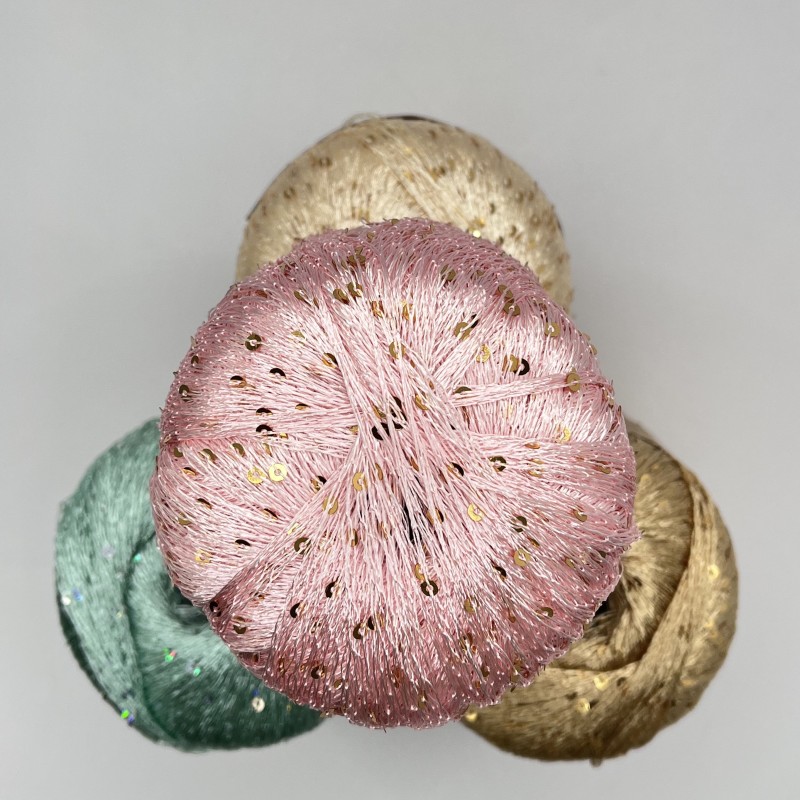 Seqine Beads Yarn Colorful 1/6.5NM Different Size 100% Polyester Customize Fancy Yarn Raw White Polyester Yarn