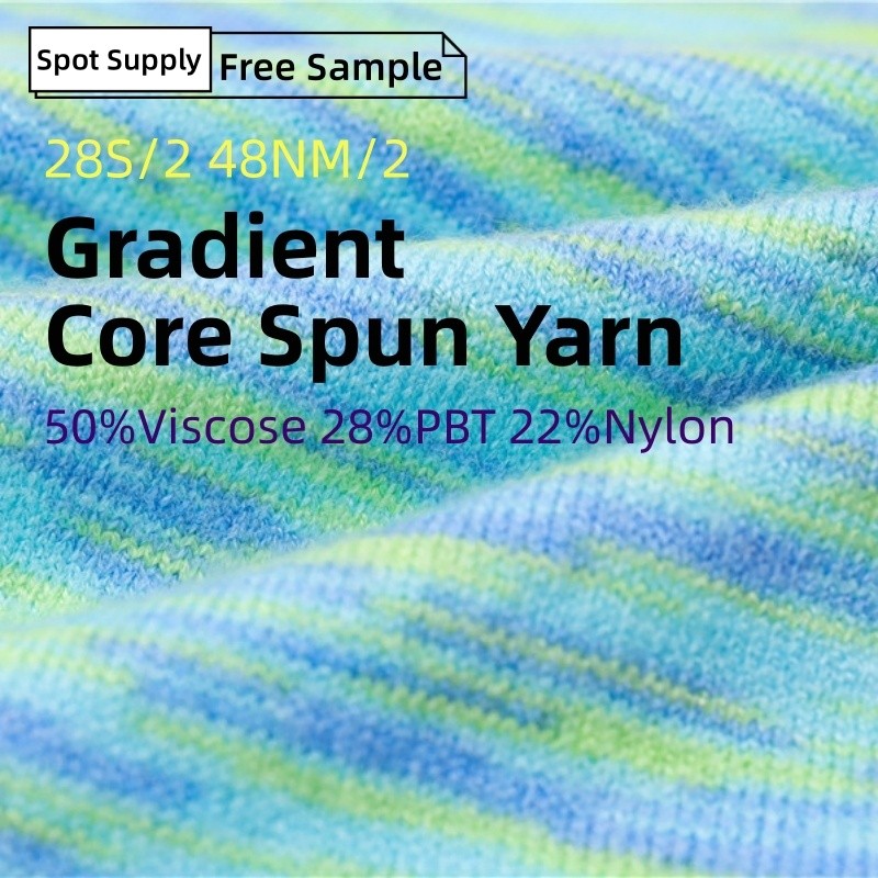 Spot Wholesale 48NM Long-distance Dyeing Fancy Yarn 50%Viscose 28%PBT 22%Nylon 28S/2 Gradient Core Spun Yarn Gradient Yarn