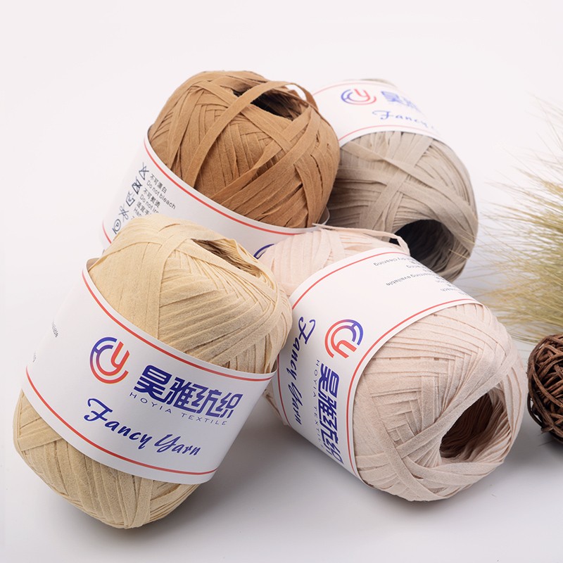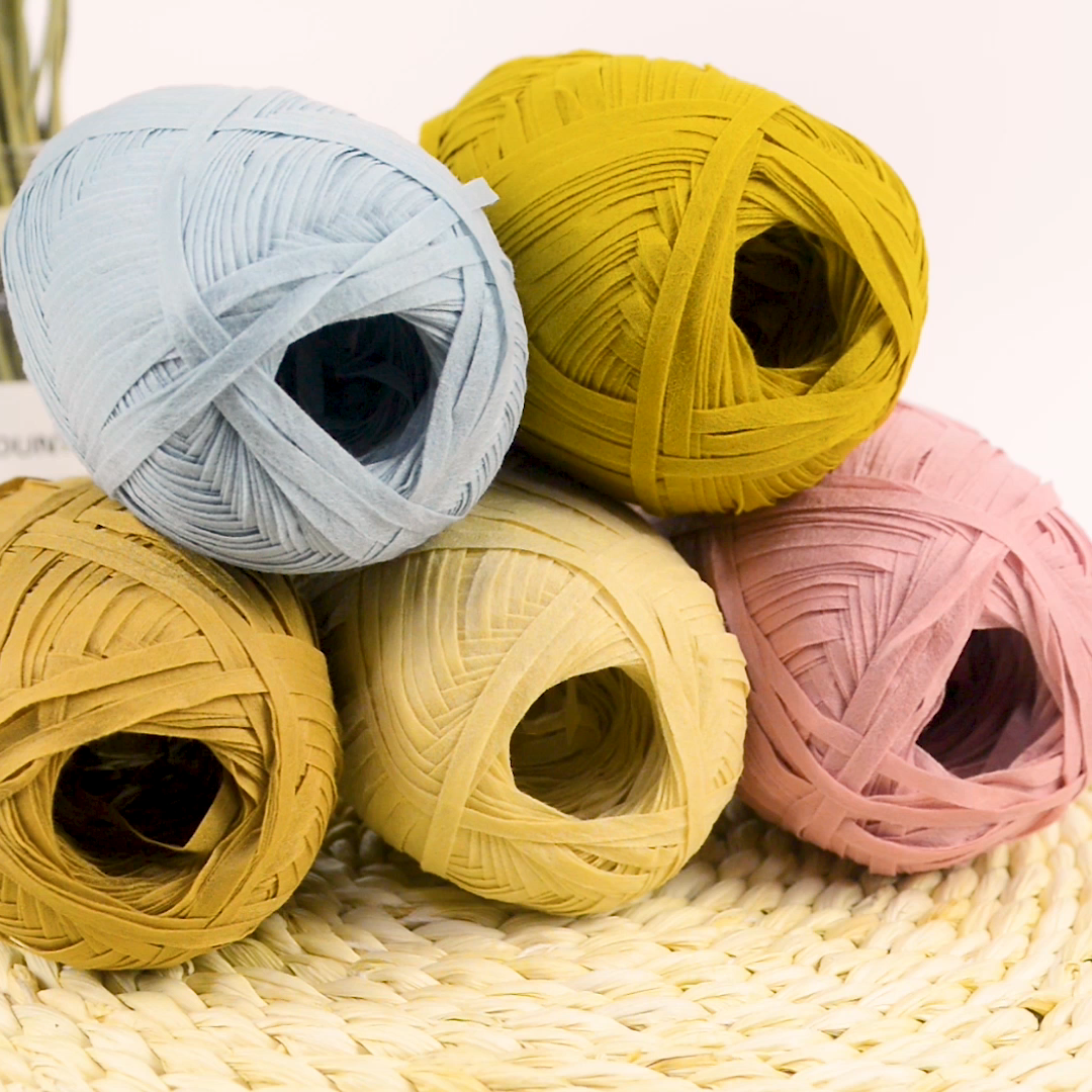 But now,after all our go all research and study,we develop the new raffia made from polypropylene,which is 99% same and like to plant fiber raffia yarn,but more advantages than traditional raffia crochet yarn,new raffia yarn is washable,be ironed,and color fastness is much better than before.Bio degradable, breathable.Can be used for crocheting for hats, bags.So here we go for this new products now!