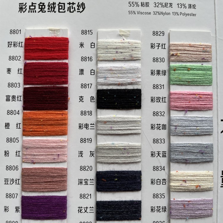28s/2 Color Dot Rabbit Velvet Core Spun Yarn 55% Viscose 32% Nylon 13% Polyester Fancy Blended Yarn Knitted Sweater