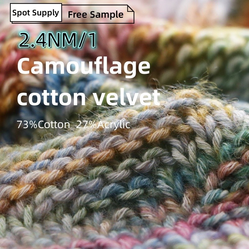 Fancy Yarn Handmade DIY Warm Color Section Dyed Spray Wool Yarn 2.4NM/1 Camo Cotton Velvet Mixed Color Cotton Yarn 73% Cotton